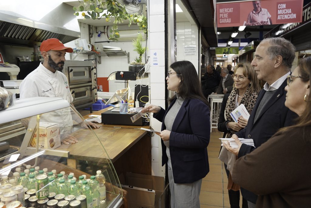 Lupe Ferrer, regidora de Comerç, Restauració i Autònoms, i Toni Fuster, director general de Comerç i Restauració, estan visitant aquesta setmana els mercats municipals per a informar sobre la possibilitat d’optar, per segon any consecutiu, a les subvencions de PalmaActiva. També han participat en la visita representants de la patronal PIMECO i dels mercats municipals.